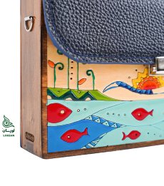 کیف چرم و چوب نگارگری شده