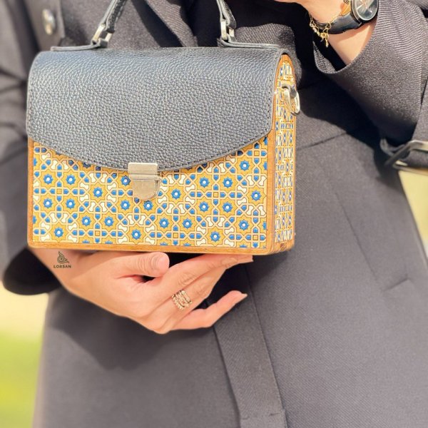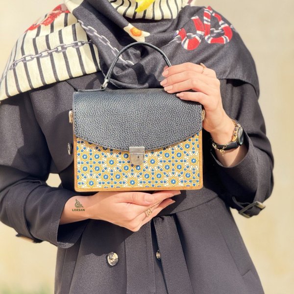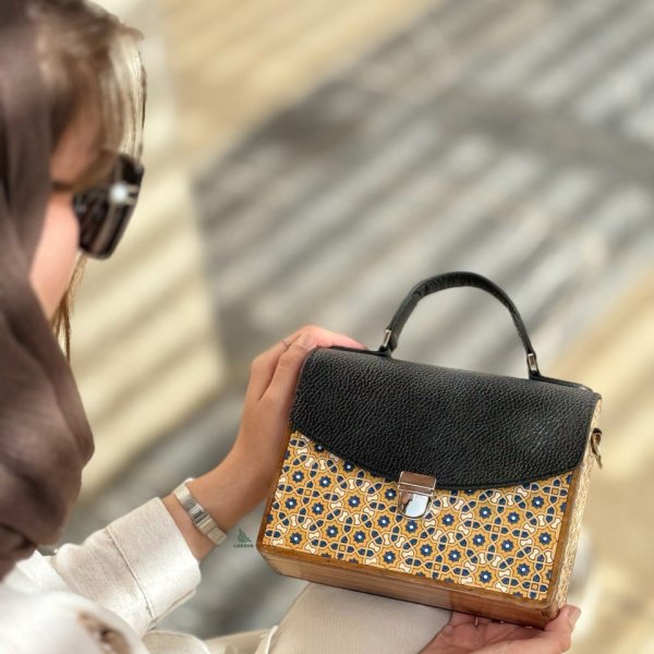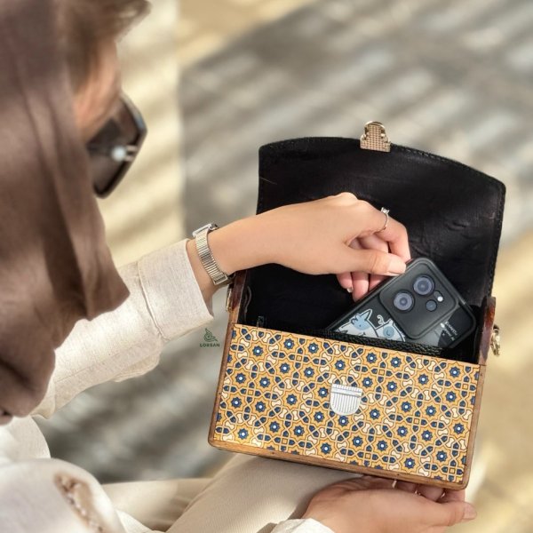 کیف چرم و چوب نگارگری شده دستی
